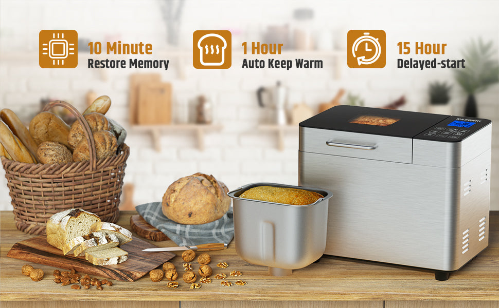 4. Enjoy a loaf of delicious, hot bread with the 1-hour auto keep warm setting after baking is complete.